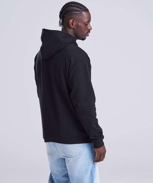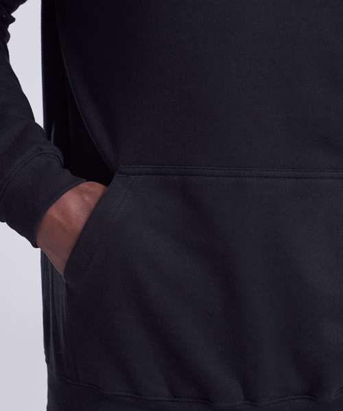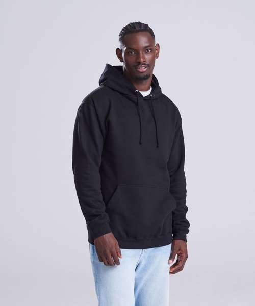 Twin-needle stitching detailing. Double fabric hood with self coloured cords. Kangaroo pouch pocket. Ribbed cuffs and hem. Soft cotton faced fabric creates ideal printing surface. Simple tear out label makes it perfect for rebranding. Brushed inner fabric.